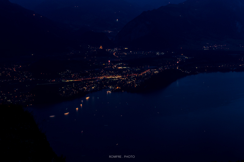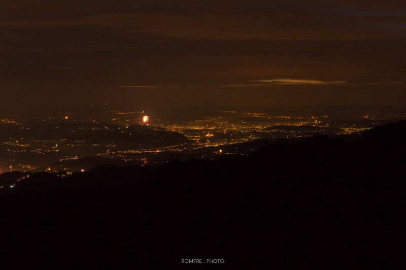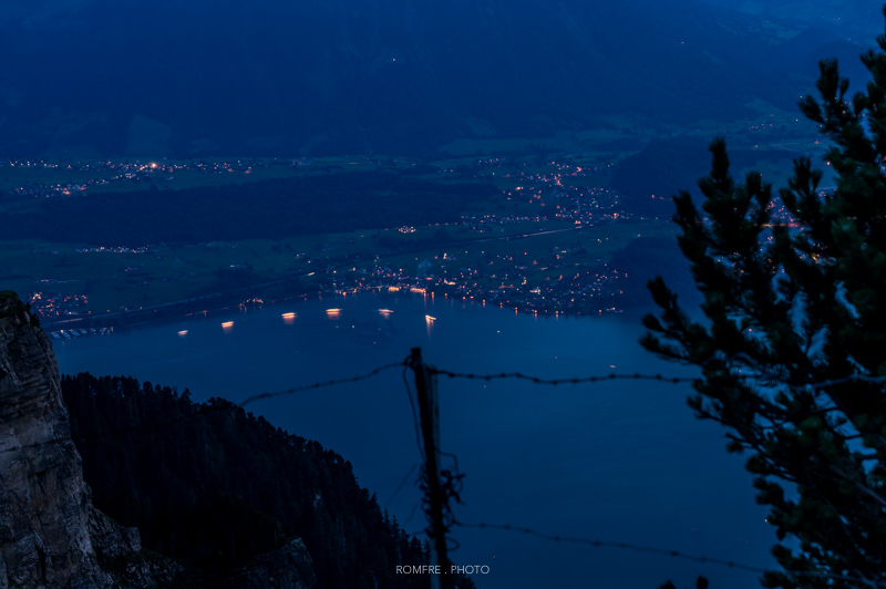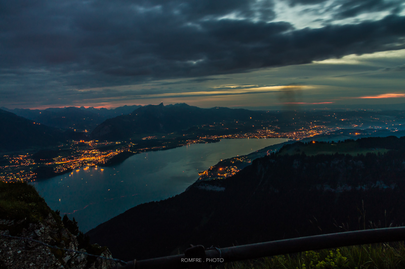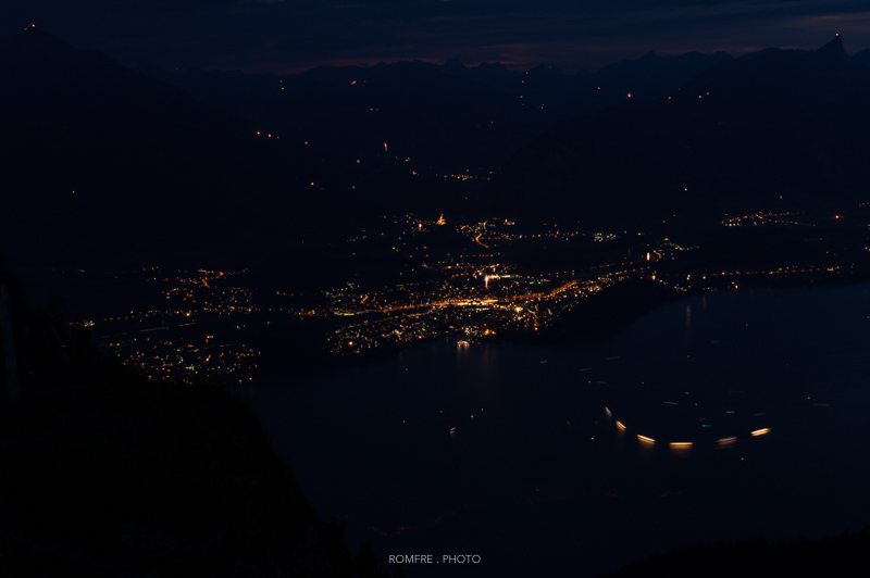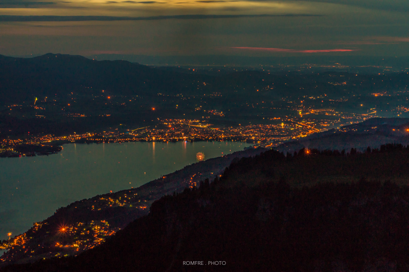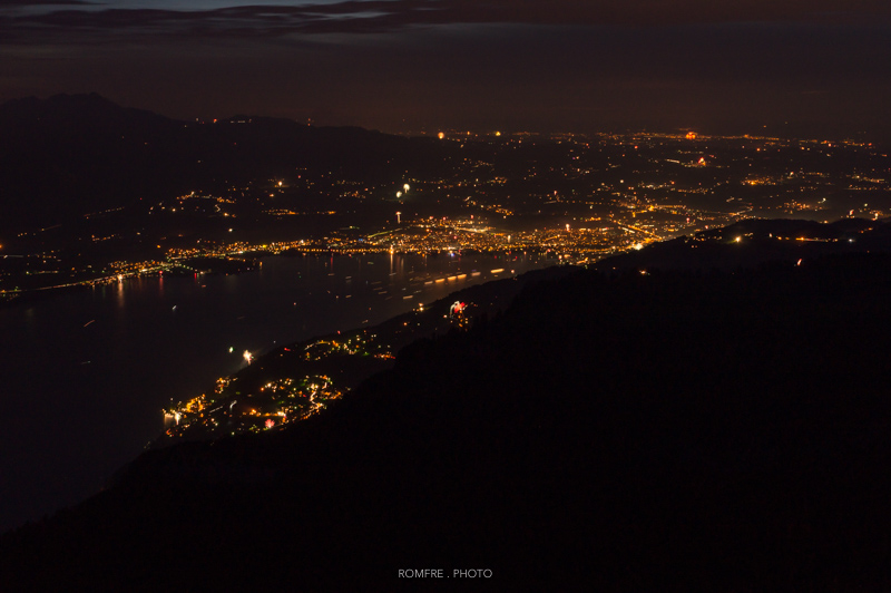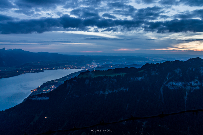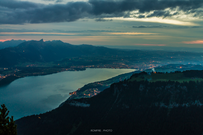 Blick Richtung Bern vom Niederhorn mit Gurtenfeuerwerk